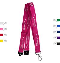 The custom woven lanyard is a unique style and unlike other lanyards. The text or logo is woven (embroidered) into the fabric of the custom lanyard. The embroidered text or logo gives a professional look to the woven lanyards. It looks more third-dimensioned and splendid. However the complicated detailed designs are not recommended for this custom woven lanyards. To create your own your lanyard select a colour select a free attachment add on optional safety breakaway unit and add your logo.