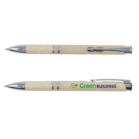 Discover the eco-conscious Push Button Ballpoint Pen, crafted from a 50/50 blend of wheat fibre and BPA-free polypropylene. This pen combines sustainability with performance, featuring a smooth writing experience and a writing distance of 2.1 kilometres. The sleek design includes silver accents and a convenient push-button mechanism for ease of use. Ideal for those who appreciate both environmental responsibility and reliable functionality.
