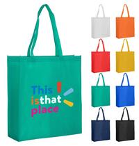 Large gusset paper shopping bag with white PP woven laminated inside handles and piping are made from non woven material water resistant tough and strong. Great bag for farmers and carrying heavy and wet items get ready to brand your logo on this bag for the coming event.
