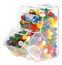 A variety of 9 complementary tastes for a true flavour explosion with every bite. Jelly Bean is a very popular promotional product for advertising and corporate marketing events it is also a great gift for weddings parties and personal gifts. This bulk mini Jelly Bean assortment is mixed with 9 great colours and Flavors - White (Lychee) Yellow (Lemon) Orange (Orange) Red (Strawberry) Purple (Grape) Pink (Raspberry) Green (Apple) Blue (Blueberry) Black (Liquorice). Sold as 1kg bags.