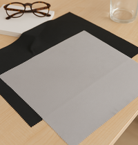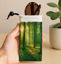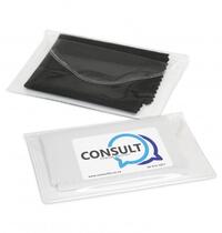 This microfibre carrying case is designed for storing and cleaning sunglasses or reading glasses. It features an attached blank microfibre cloth, ideal for gently removing dust and smudges. The soft material helps protect lenses from scratches while keeping everything in one convenient place.