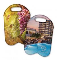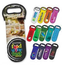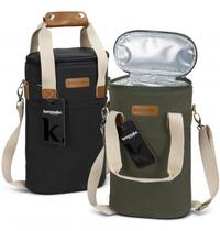 Single bottle wine carry bag which keeps wine cool while in transit. It is manufactured from 600D polyester with PE foam insulation encased in a water-resistant PEVA inner liner. Other features include strong woven carry handles and a secure Velcro closure.