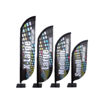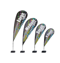 The rectangular flag print is attached to detachable lightweight poles which comes in 3 different size’s. We also offer a range of bases to suite your requirements.