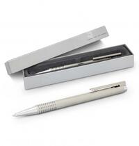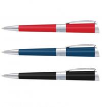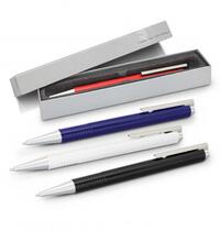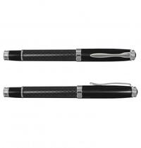 Luxury twist-action brass ballpoint pen which has a lacquered upper barrel, a genuine carbon fibre lower barrel and shiny chrome accents. It has a black large volume refill with 1200 metres of German manufactured Dokumental ink and can be presented in an optional gift box.