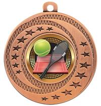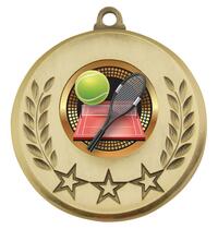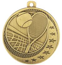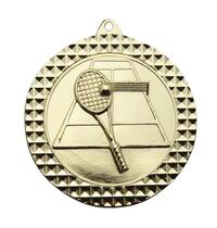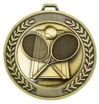 Antique gold, silver and bronze medals for Tennis. A classic design, the Sunraysia Medals feature iconic tennis elements of the racquet, ball and net. Medals feature an extra thick edge and a rectangle panel on the back of the medal for your engraving.