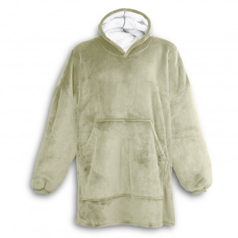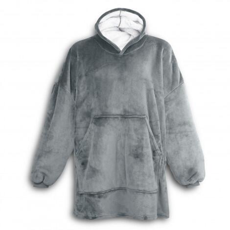 Extra-cosy blanket hoodie made from luxe 180gsm polyester flannel with a soft 180gsm sherpa lining for added warmth. The hoodie features a large kangaroo pocket on the front, and one size will fit most.