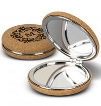 Compact mirror with a hinged cover and black PU exterior. Essence features two mirrors with one being a magnification mirror.