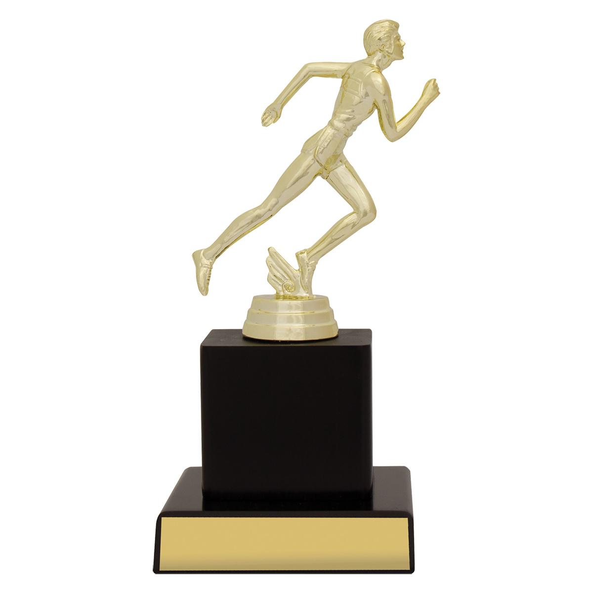 Series of standout timber column trophies present an effective trophy option offering multiple sizes for your awards. Figures & tops available for all activities.