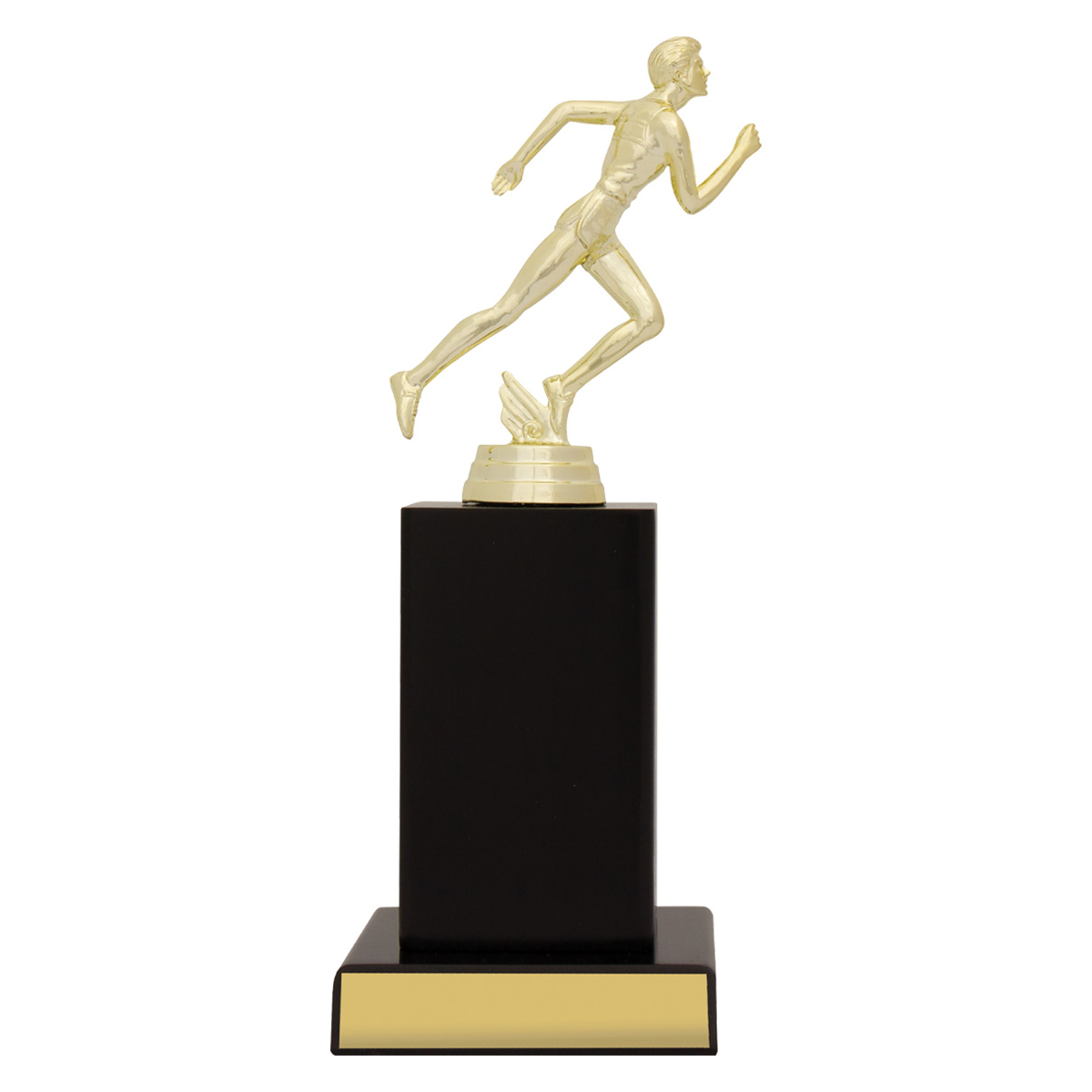 Series of standout timber column trophies present an effective trophy option offering multiple sizes for your awards. Figures & tops available for all activities.