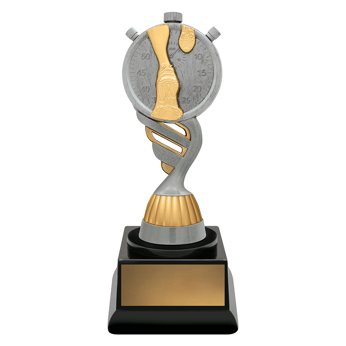 Simple but effective trophy design for running and track events. Budget trophies finished in classic antique silver.