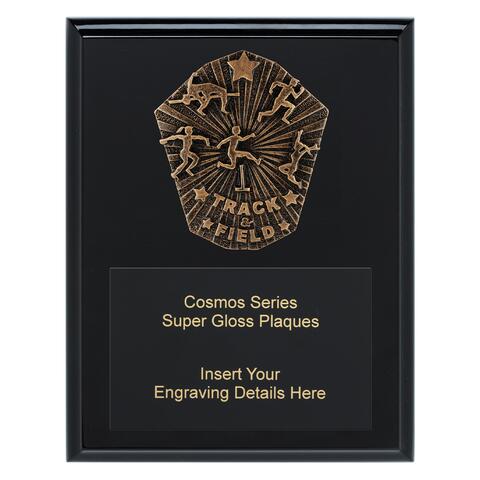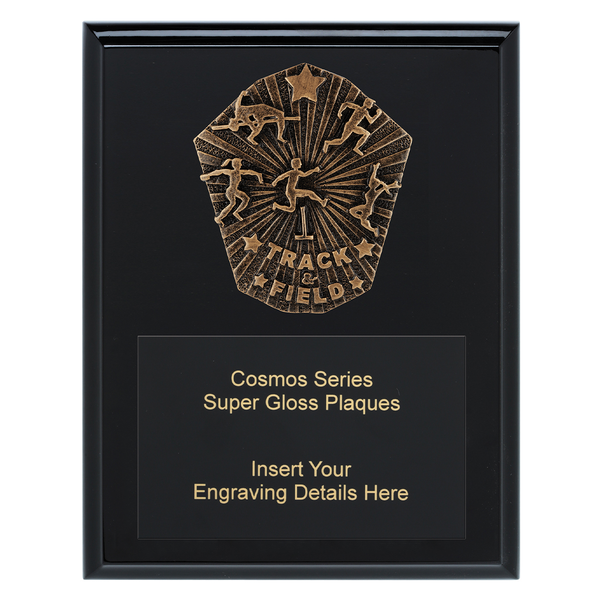 Range of super gloss plaques in classic black with brilliant Cosmos fronts and matte black engraving. Choose plaque - available in 3 sizes - to suit your sport or activity.