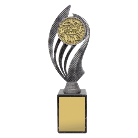 Husky series of trophies on premium black marble allows for different award options for your activity. Appealing antique silver and gold combination over number of sizes.