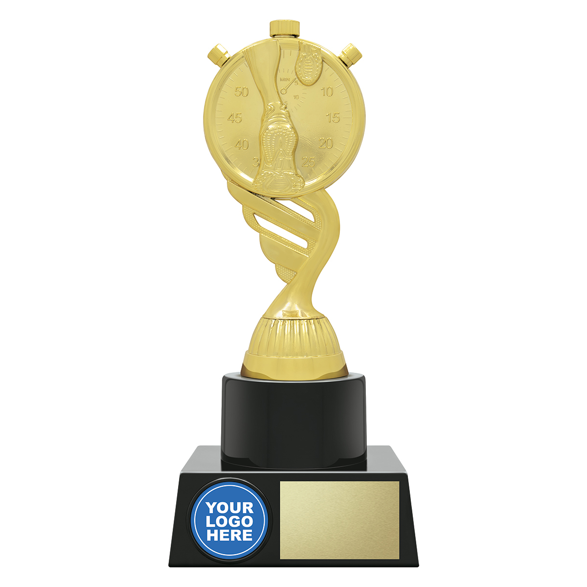 Athletics trophies in 3 sizes, a reliable option to award participants in track and running events and with a design finished in traditional bright gold. With the optional space for your custom club logo if required.