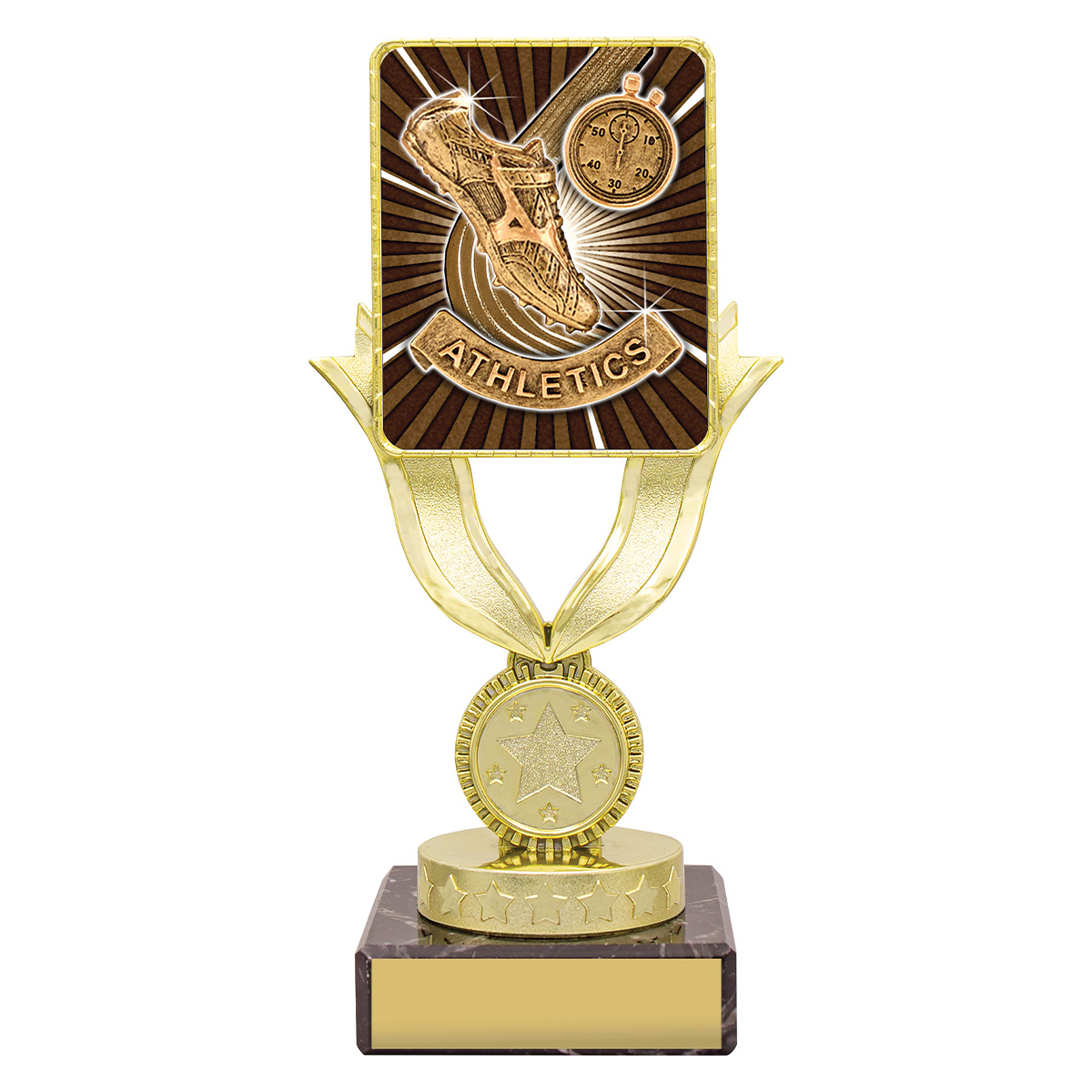 Brilliant athletics trophies in the Lynx Bold range features gold trophy holder showcasing the insert for your sport or activity. Range of sizes available.