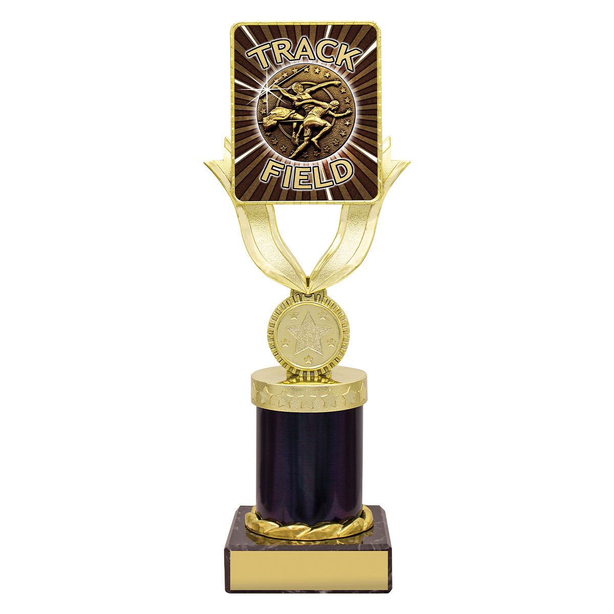 Brilliant track & field trophies in the Lynx Bold range features gold trophy holder showcasing the insert for your sport or activity. Range of sizes available.