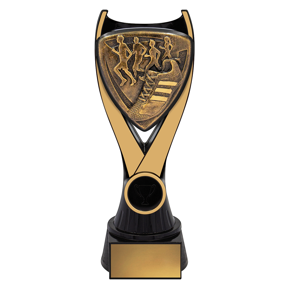 Nova series of trophies present a unique black & gold colour combination with a bold 3D type design to really celebrate the sport or activity of your awards.