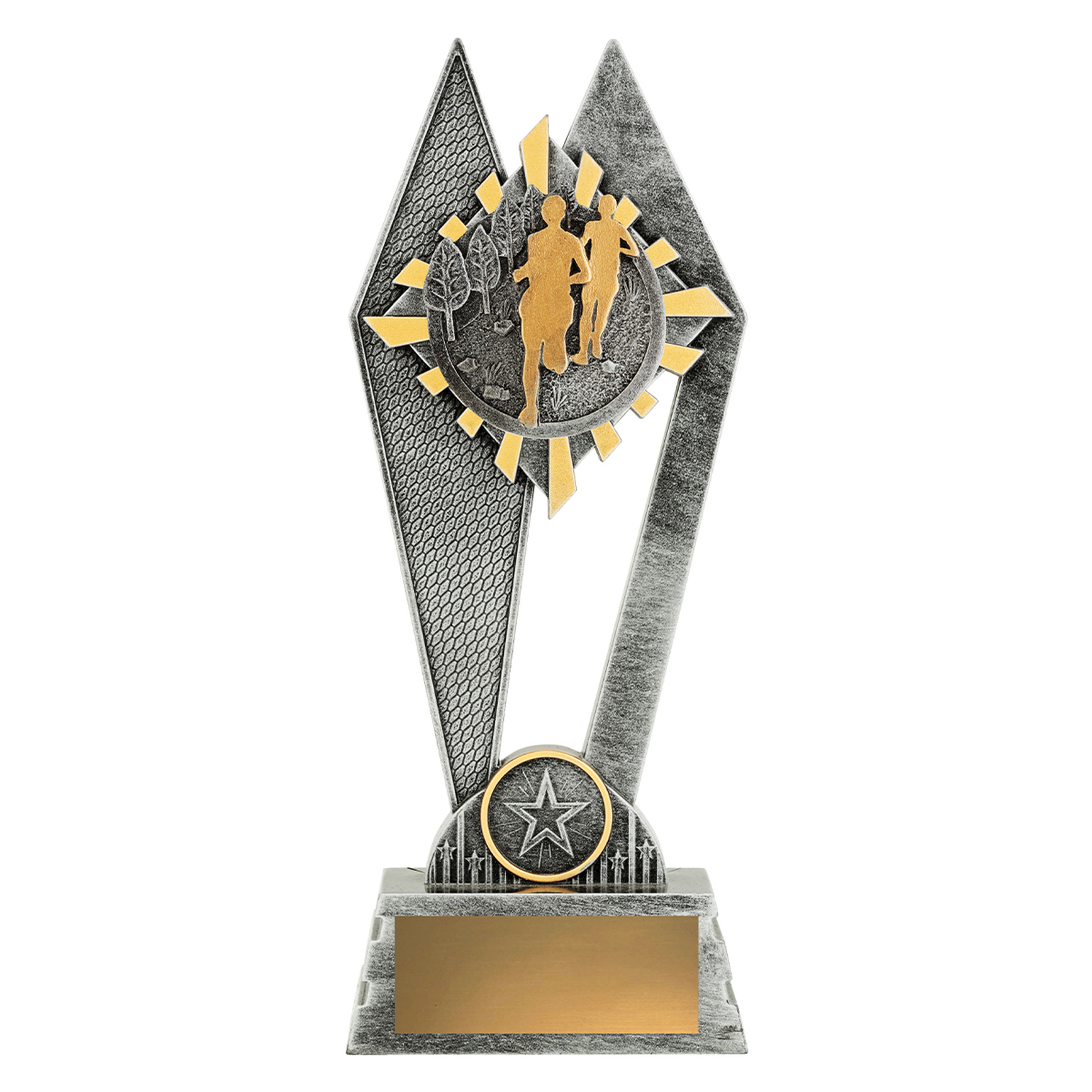 The Peak Series is an innovative set of trophies offering super value for such an impressive size range. An elevated design that showcases an impressive Cross Country theme that can be used for various competitions and awards. Available in 3 sizes.