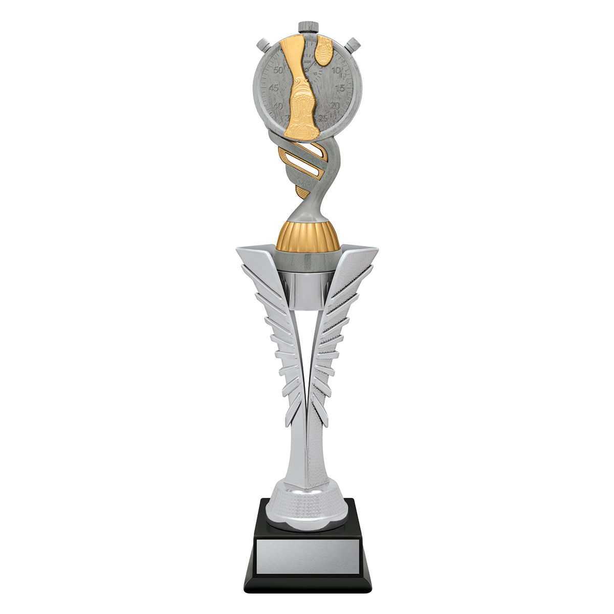 Silver Spear trophies showcase a brilliant top on a distinctive "spear" riser - the top finished in antique silver. Available in 3 sizes.