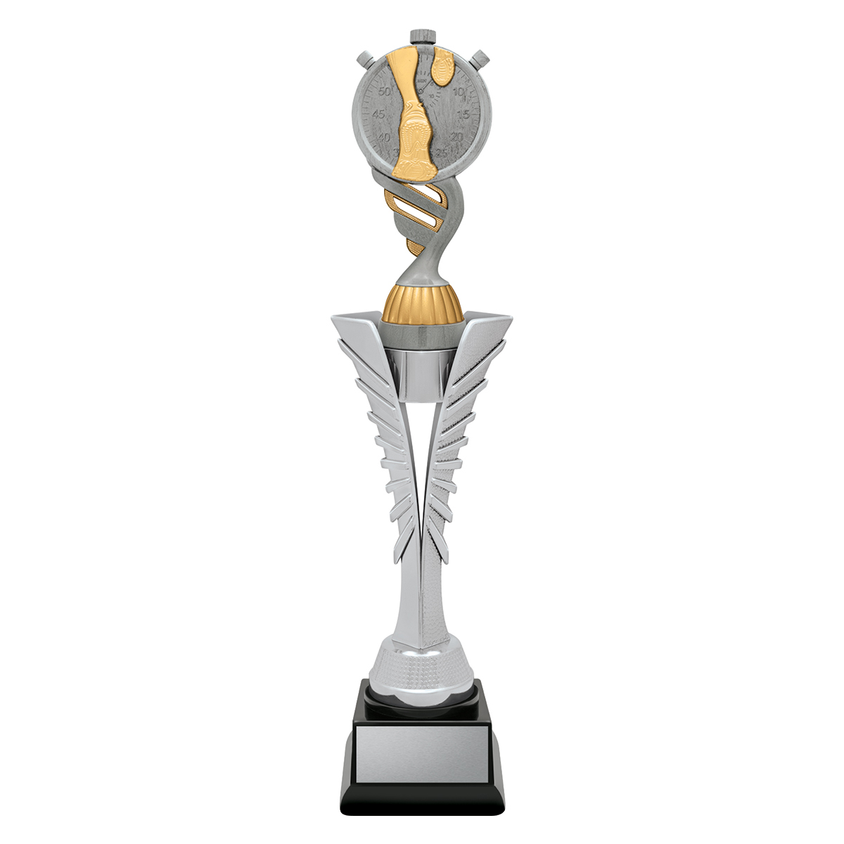Silver Spear trophies showcase a brilliant top on a distinctive "spear" riser - the top finished in antique silver. Available in 3 sizes.