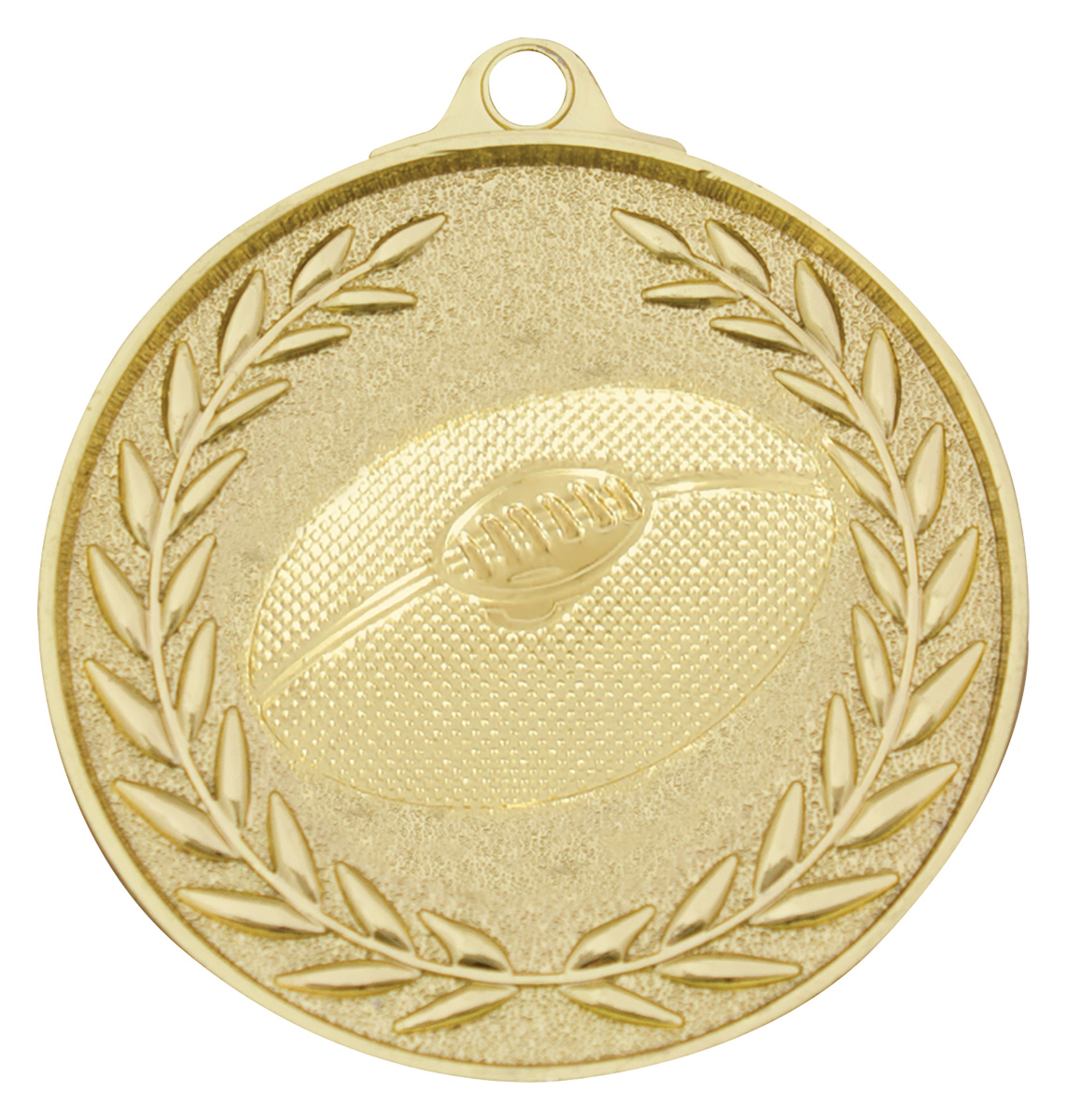 Classic & traditional wreath inspired medals for Aussie Rules. A generic theme suitable for all players, medal design features the iconic ball and celebratory wreath representing high achievement.