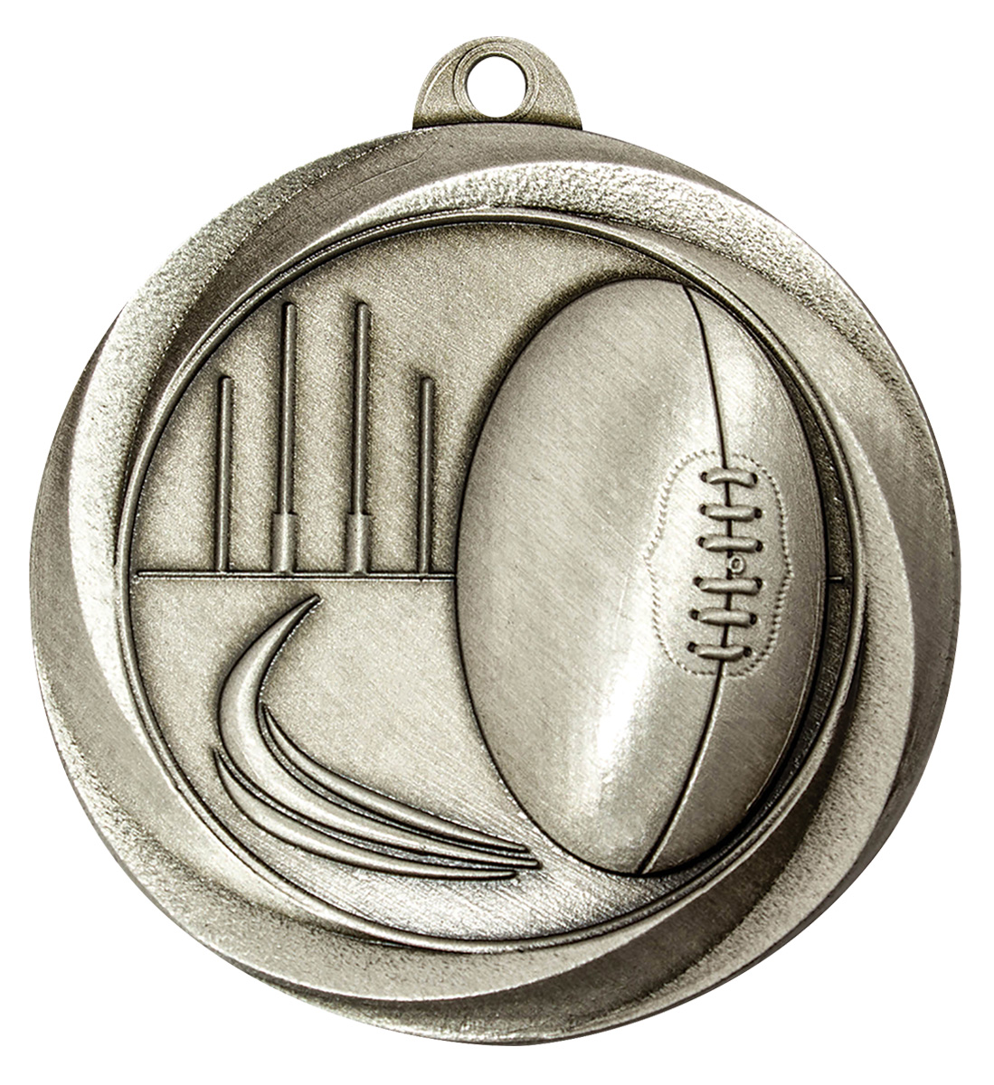 Economic series of medals to suit your budget requirements - the 3D Medal series presents excellently designed medals with high relief and detail to represent your sport or activity. Footy theme design features exciting combination of ball and posts - space for your engraving on the back of every medal. Plenty of medal box and ribbon options to complete your selection.