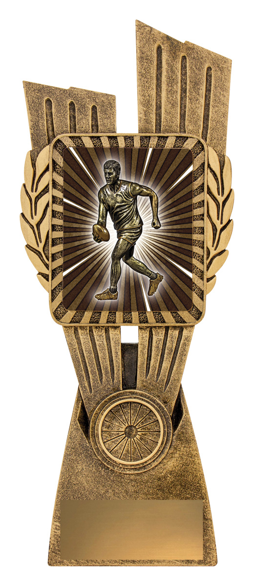 This Antique Gold Lynx Trophy is the perfect award to celebrate top achievements in your Aussie Rules football club or team. Featuring a classic wreath and vibrant footy handballer design, this trophy is customisable and available in 4 impressive sizes. Matching Lynx medal to complete the range of awards.