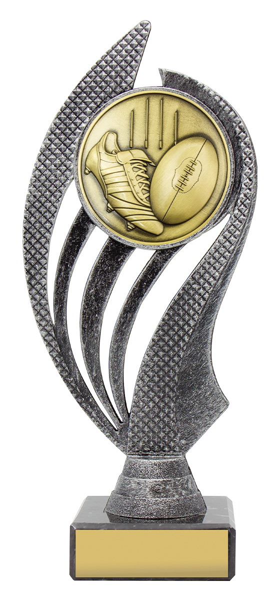 Husky series of trophies on premium black marble allows for different award options for your activity. Appealing antique silver and gold combination over number of sizes.