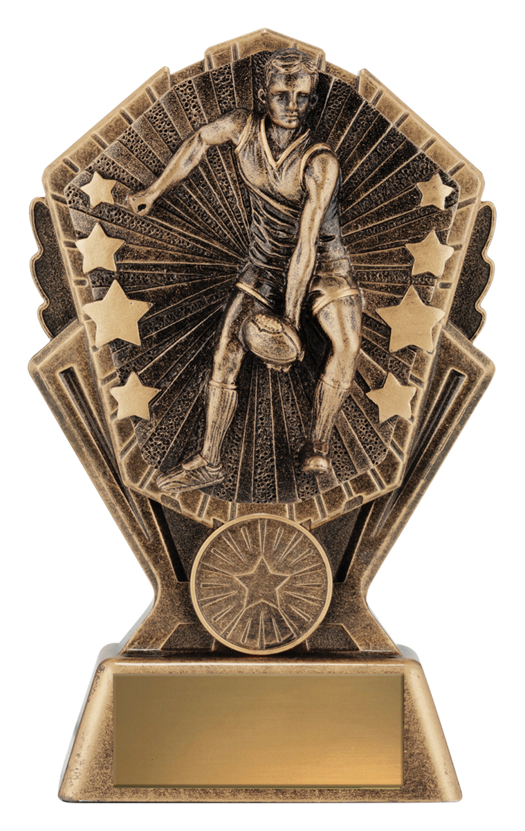 Brilliant series of trophies - the 'Cosmos' available in many different sports and activities. For Aussie Rules there are male, female and footy theme designs perfect for a variety of awards. Extra-heavyweight 3D design combined with the detailed design of your choice. Available in 3 sizes with space for insert if required.
