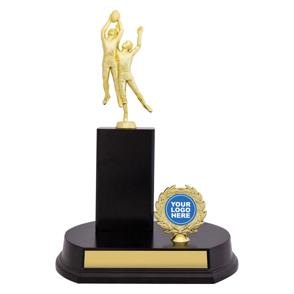 Distinctive design of timber trophy highlights the top for your sport and showcases your custom logo. Available in multiple sizes.