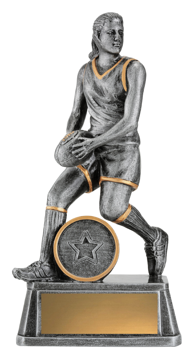 Player style trophies available in male or female over multiple sizes. Perfect for your top performing individual awards. Space for your logo.