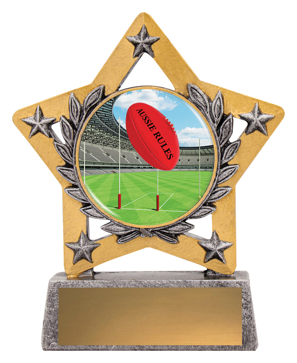 Star inspired design with traditional gold and silver colours - showcase brilliant colour image for your sport or activity. Mini stars offer great value.
