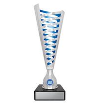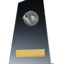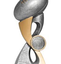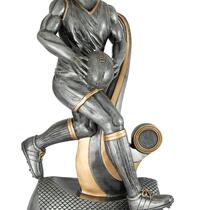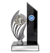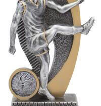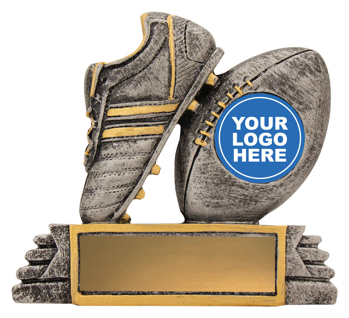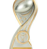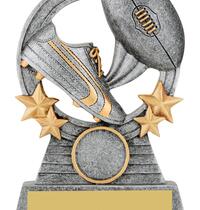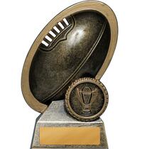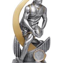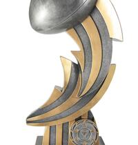 Versatile budget trophy theme suitable for footy and rugby sports. Design features boot and ball and works well with a club logo insert if available. Trophy finished in classic antique silver & gold colours.