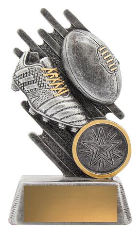 Zoom series of aussie rules trophies celebrates iconic elements of the sport over multiple sizes - ideal for both participation awards and best playing awards.