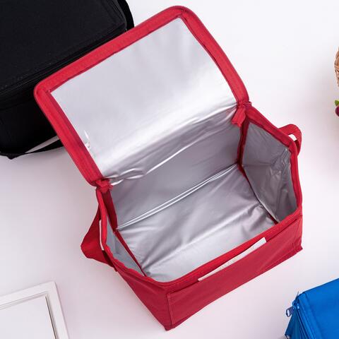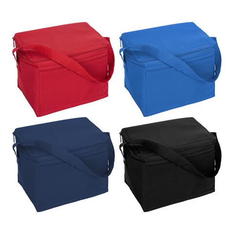 6-pack poly cooler bag made from 600D polyester with heavy vinyl backing short handles zipped front pouch is handy for your small personal items. Complete PE foam insulation to keep drink and food cool. Capacity 4.5L.