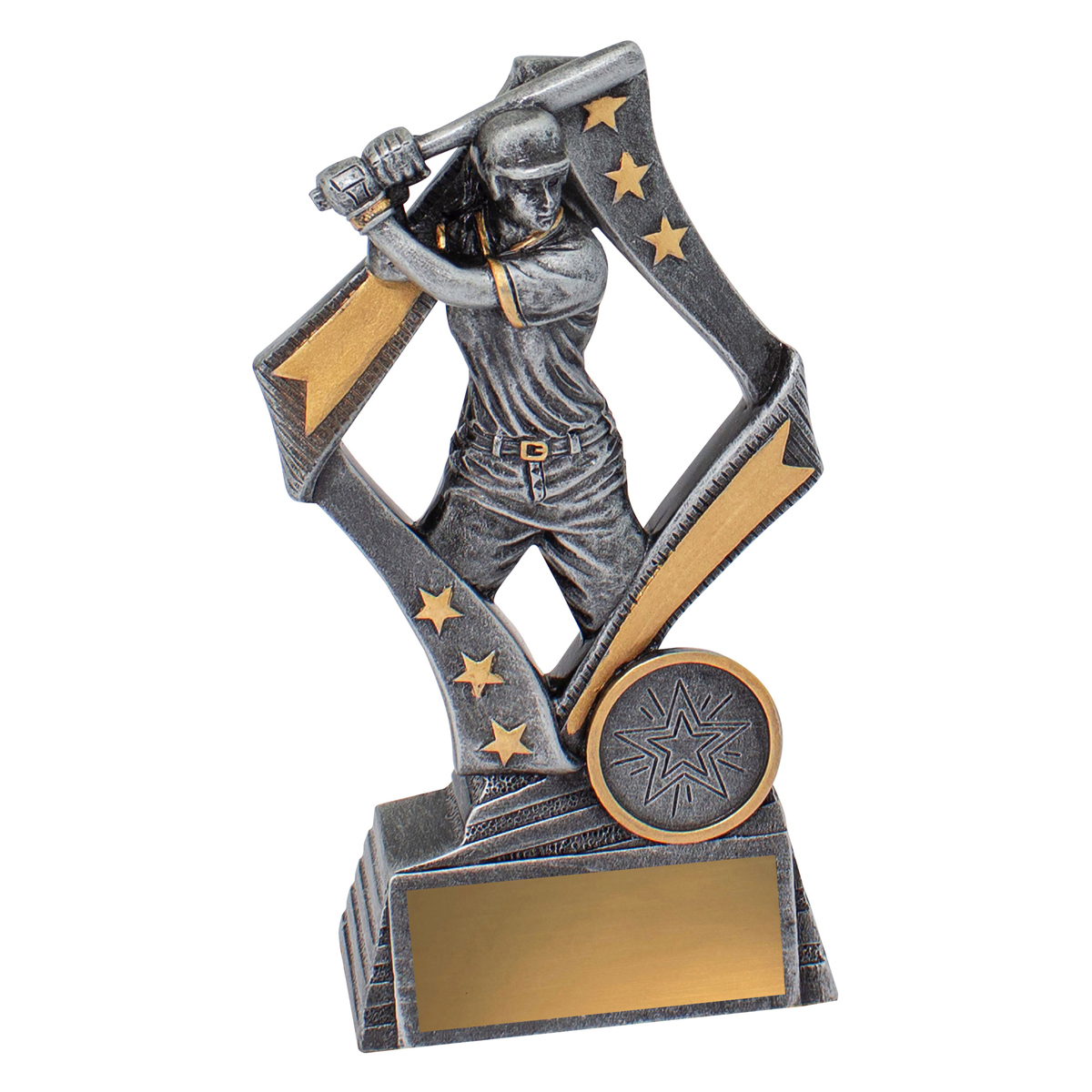 Inspiring design for your softball trophies, Flag series features batter in action and complete with classic antique silver colours. Substantial trophy with space for customisation if needed.