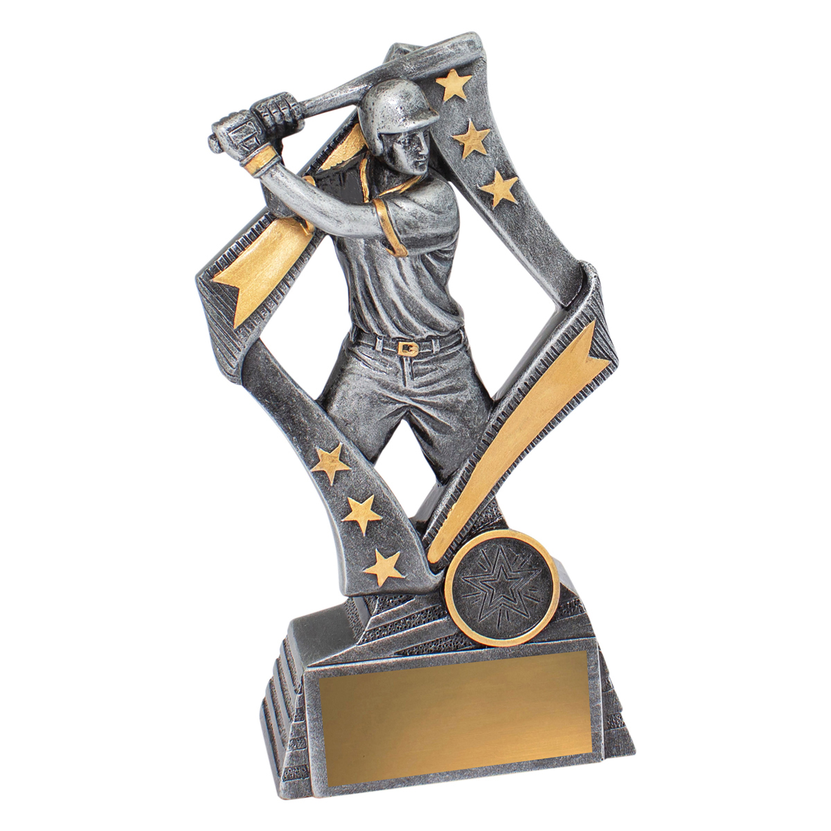 Inspiring design for your baseball trophies, Flag series features batter in action and complete with classic antique silver colours. Substantial trophy with space for customisation if needed.