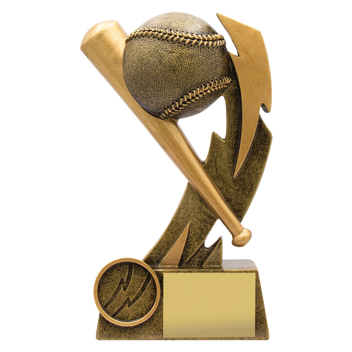 Baseball & Softball trophy series ideal for all players and ages. Classic gold trophy colours and a stylish lightning bolt inspired background. Available in 3 sizes with the option for your custom logo if required.