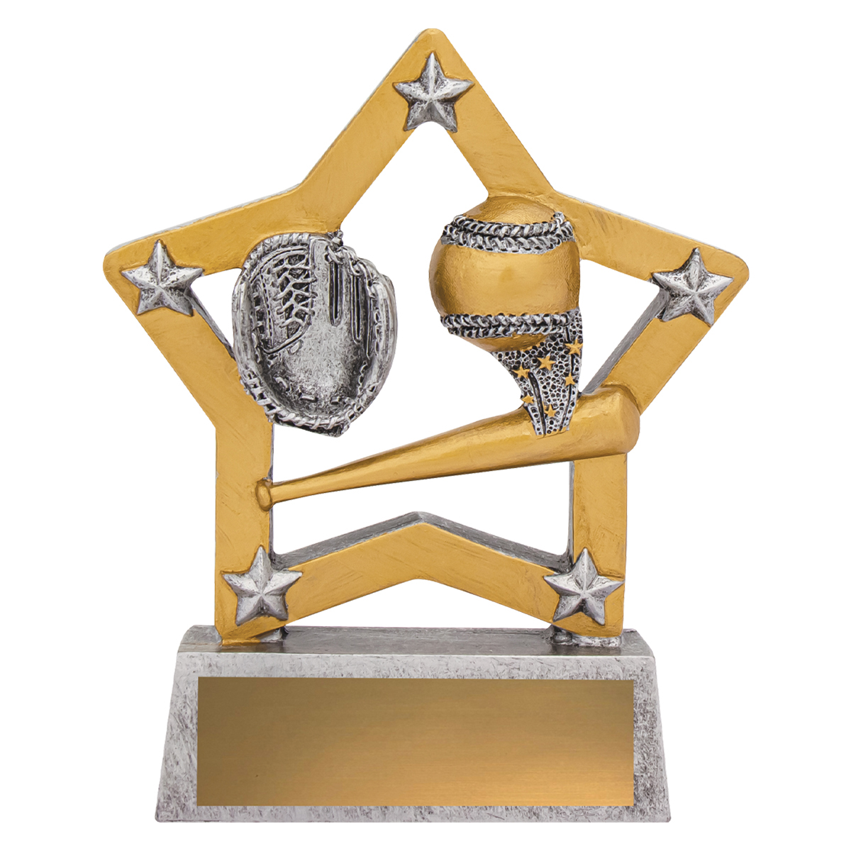 Affordable and popular Mini Star trophy for kids and players both male and female. An attractive star inspired design, classic silver and gold colours and at a budget price, well suited for your Baseball and Softball club and team orders.