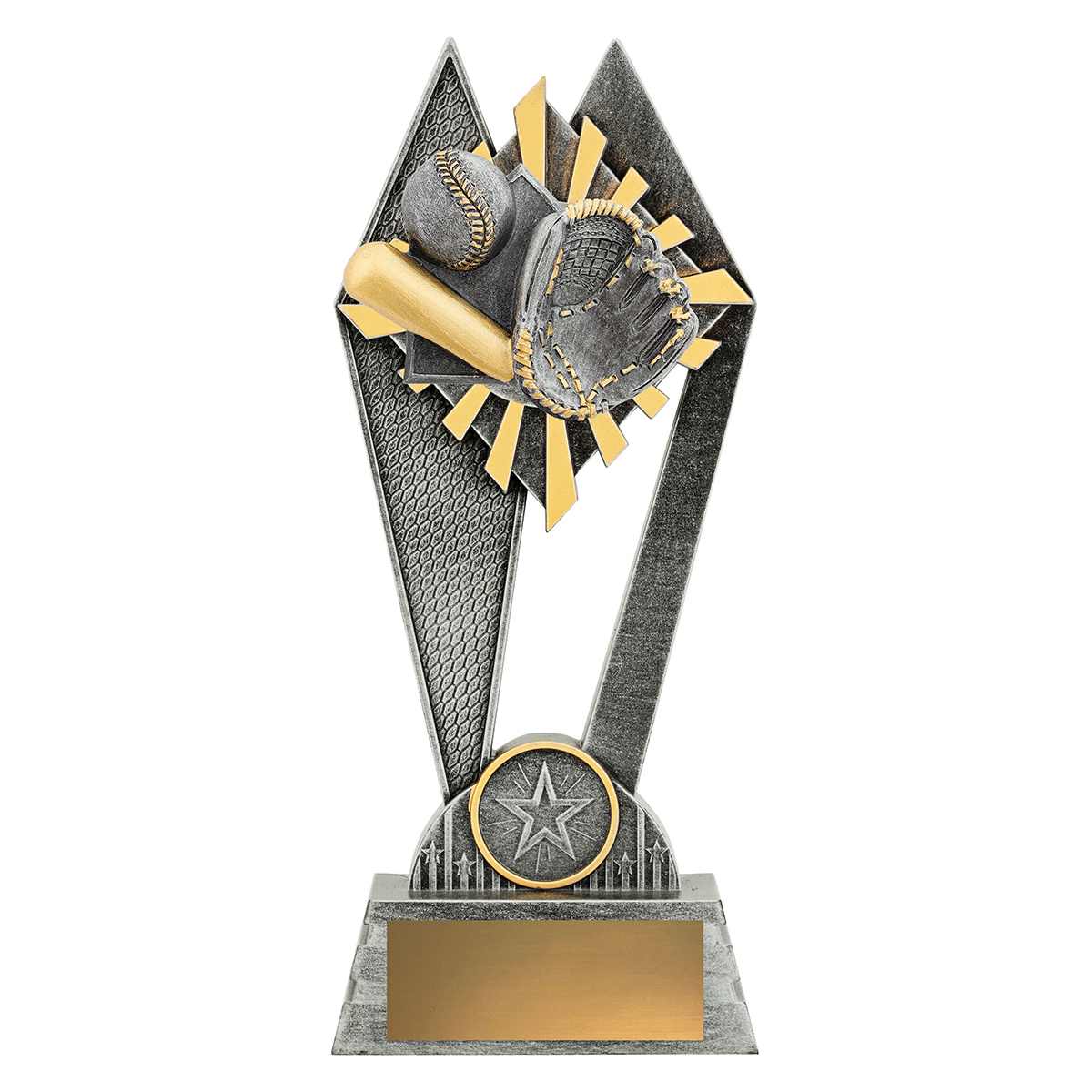 The Peak Series - for Baseball or Softball - is an innovative trophy series offering super value for such an impressive size range. An elevated design that showcases the bat & ball elements against a vibrant sunray background.