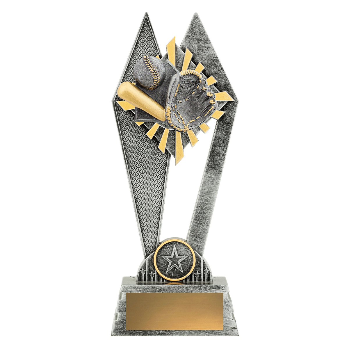 The Peak Series - for Baseball or Softball - is an innovative trophy series offering super value for such an impressive size range. An elevated design that showcases the bat & ball elements against a vibrant sunray background.