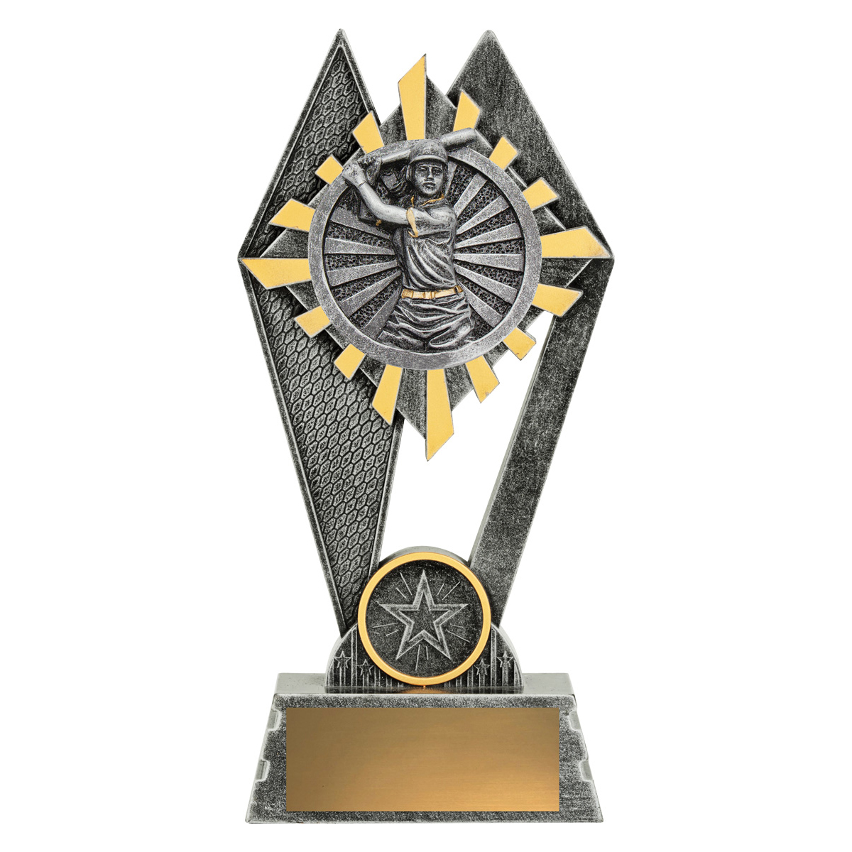The Peak Series is an innovative trophy series offering super value for such an impressive size range. An elevated design that showcases a classic pose for softball against a vibrant sunray background.