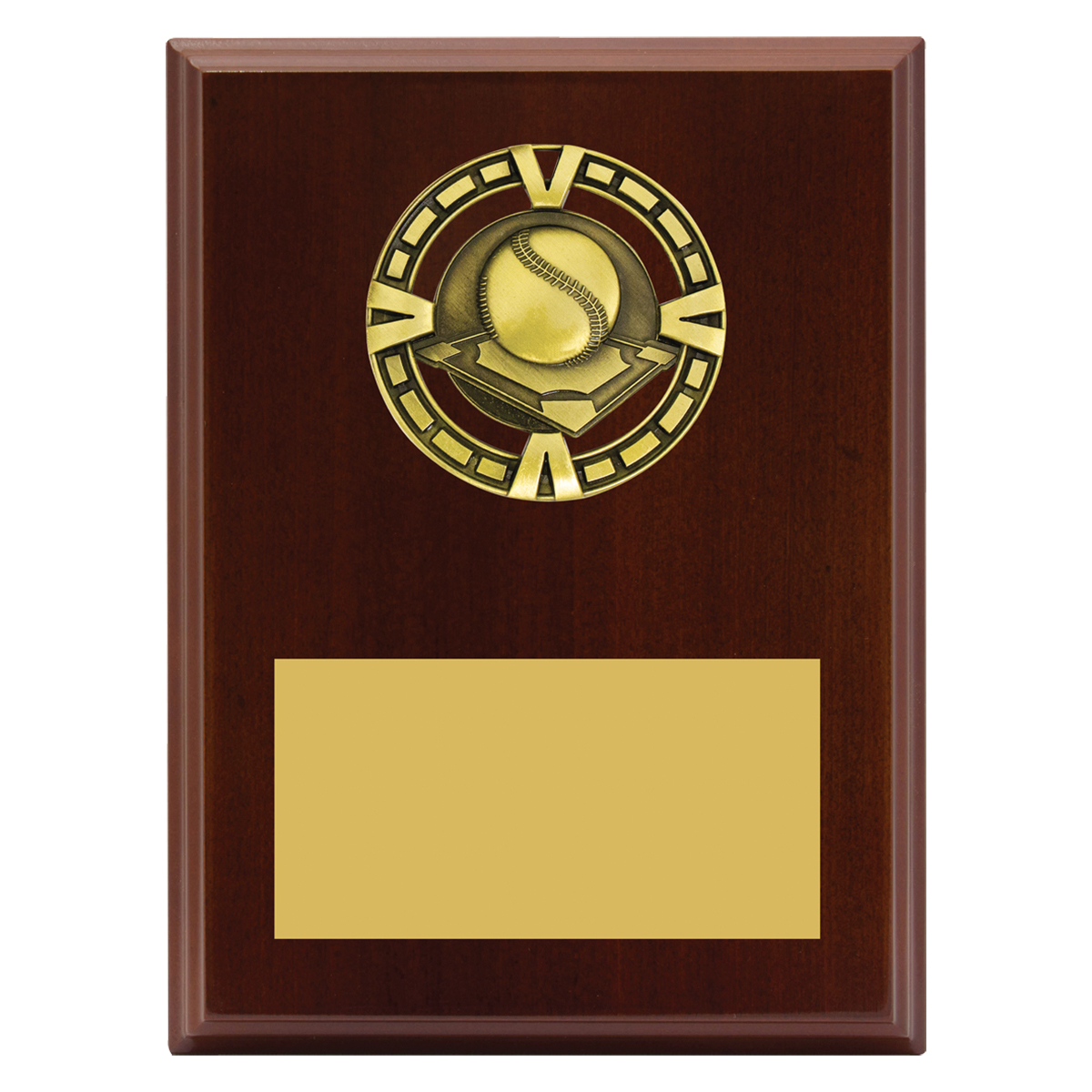 Popular walnut plaque features brilliant Varsity medal to create an affordable but premium award. Great for top performers, coaches, managers, administrators etc.