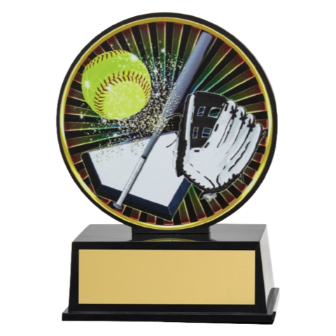 Vibe series of trophies present fresh and affordable trophy alternatives ideal for kids and juniors. Softball design features ball, bat and glove elements with bold and vibrant colours.