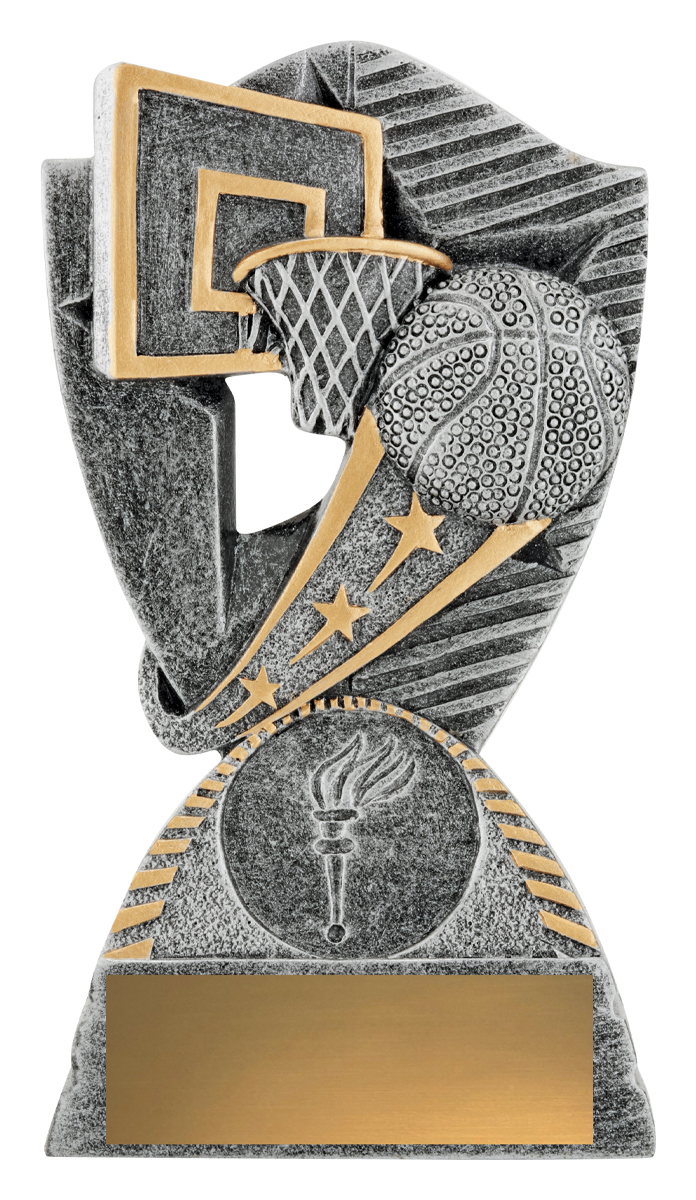 Brilliant basketball trophy for your team or club. The Gambit offers a dynamic theme in antique silver & gold - space for your custom logo.