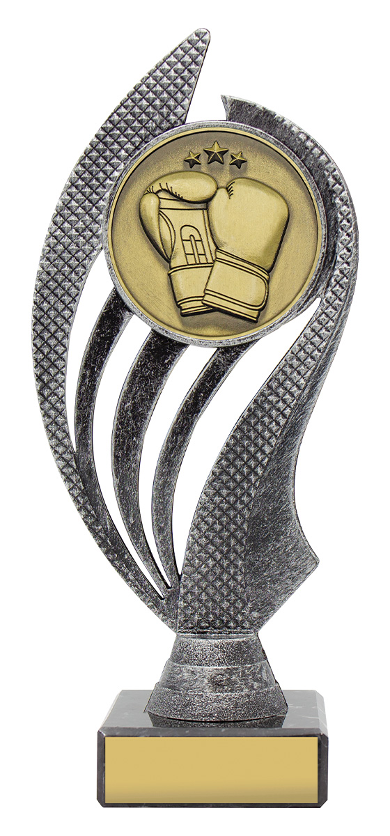 Husky series of trophies on premium black marble allows for different award options for your activity. Appealing antique silver and gold combination over number of sizes.