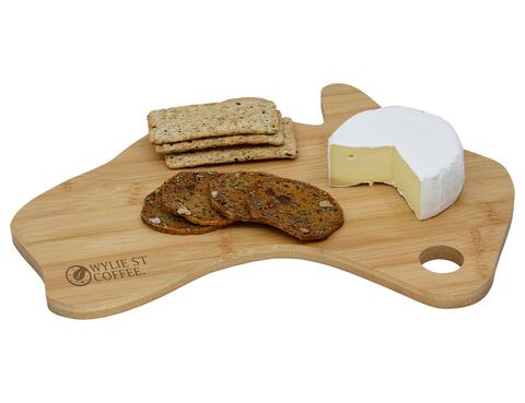 Down Under Cheese Board is crafted into the shape of Australia and makes an ideal give away for international clients, staff and delegates. Manufactured from multi-layer eco-friendly bamboo, this cheese board is supplied laser engraved with your logo and packed in a natural-coloured gift box. Because of the unique nature of bamboo, the product and engraving colour may vary from item to item. As this product is hand crafted, each cheese board may differ slightly in shape and size.
