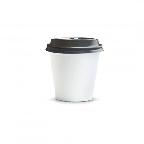 Small 180ml (6oz) disposable paper coffee cup, available with black or white lids. The PE lining prevents leaks and maintains cup integrity, while full-colour printing ensures your branding stands out. Perfect for showcasing your brand in cafes, at markets, events, social gatherings, or even during daily commutes. Suitable for both hot and cold drinks. A production lead time of 17 working days applies to this product.