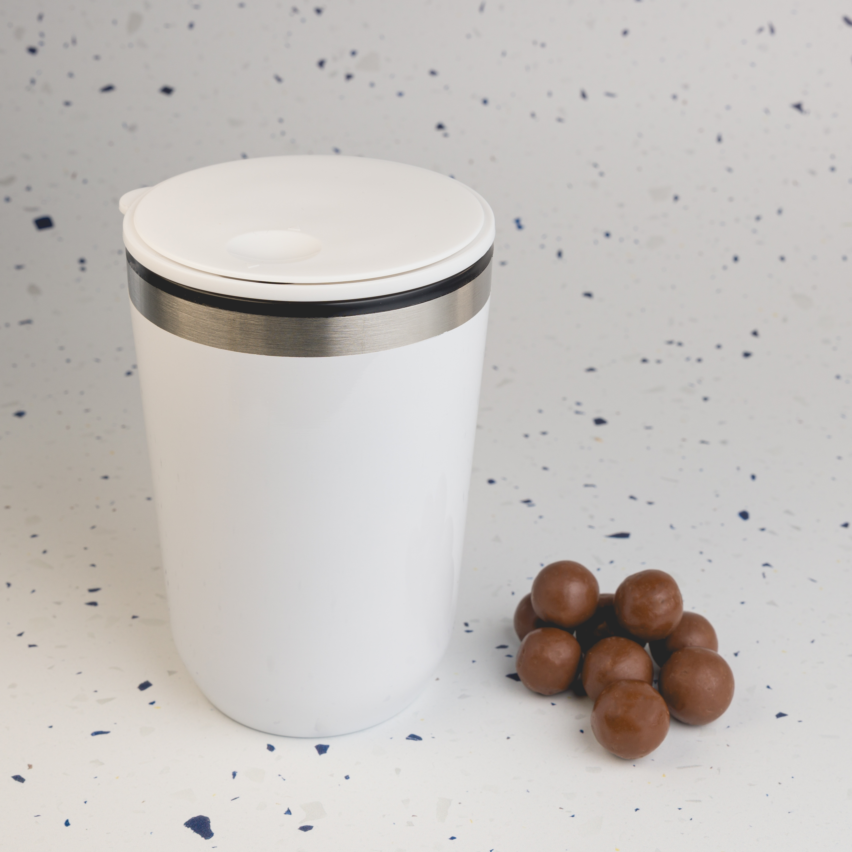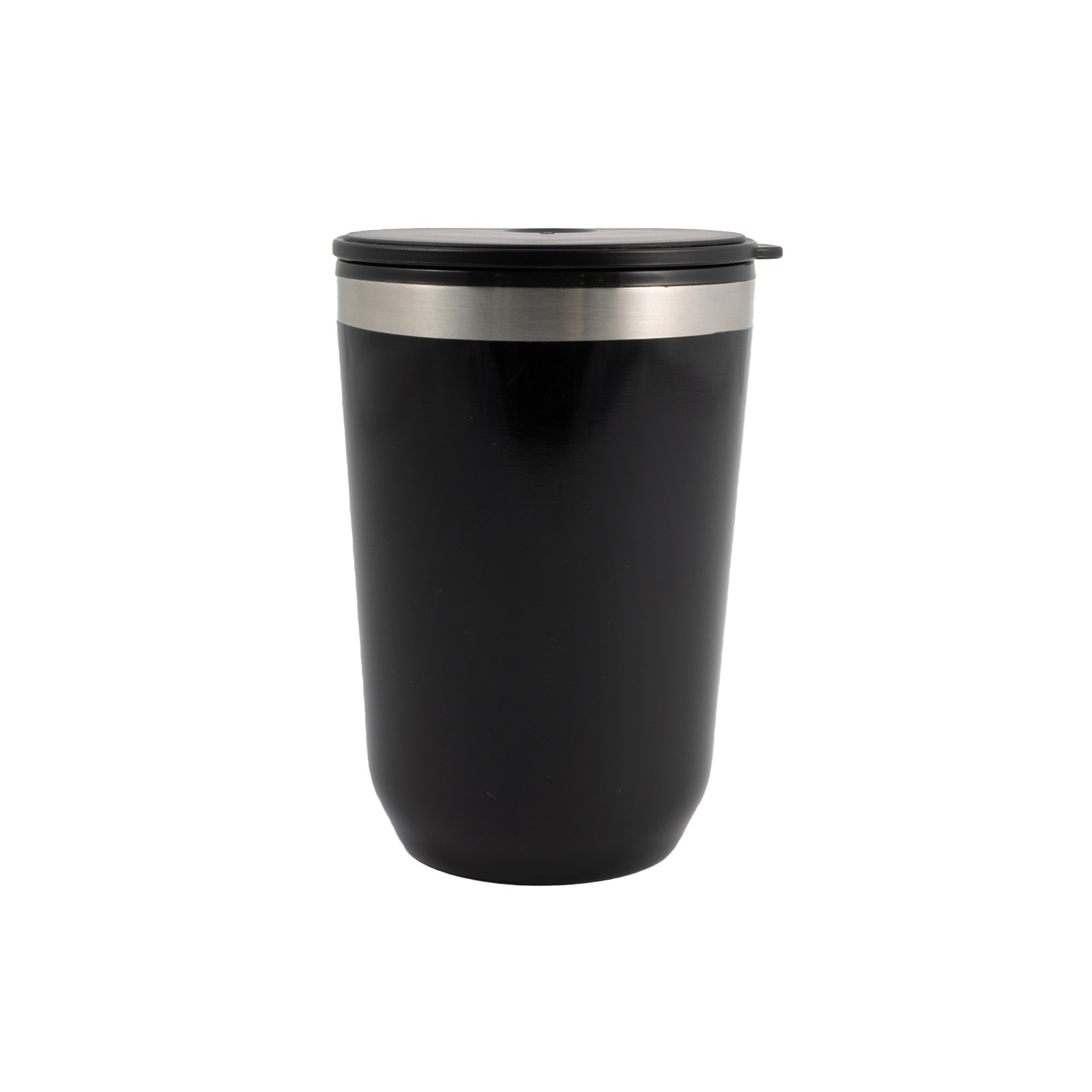 Introducing the Rizz Coffee Cup – your affordable and budget-friendly choice for enjoying your favourite beverages. This double-walled cup is designed with a black PP inner and a durable 201-grade outer stainless steel, making it suitable for both hot and cold liquids (not suitable for freezing). The unique sliding lid features an easy-to-drink opening, providing convenience on the go. With a maximum capacity of 390ml, it's the perfect companion for your daily caffeine fix. The cup's top boasts a 10mm exposed stainless steel ring for added style. To preserve the logo, hand washing is recommended. Elevate your sipping experience with the Rizz Coffee Cup – where affordability meets functionality in every sip.