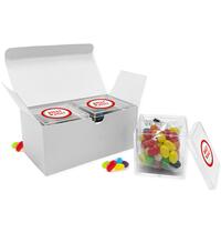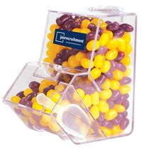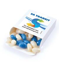 A variety of 9 complementary tastes for a true flavour explosion with every bite. Jelly Bean is a very popular promotional product for advertising and corporate marketing events it is also a great gift for weddings parties and personal gifts. This bulk mini Jelly Bean assortment is mixed with 9 great colours and Flavors - White (Lychee) Yellow (Lemon) Orange (Orange) Red (Strawberry) Purple (Grape) Pink (Raspberry) Green (Apple) Blue (Blueberry) Black (Liquorice). Sold as 1kg bags.