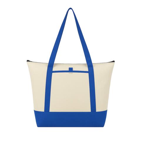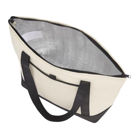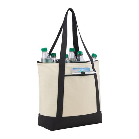 Insulated with heat-sealed water-resistant lining. Zippered main compartment with double 24 inch handles. Open front pocket with pen loop. Capacity of approximately 24L.